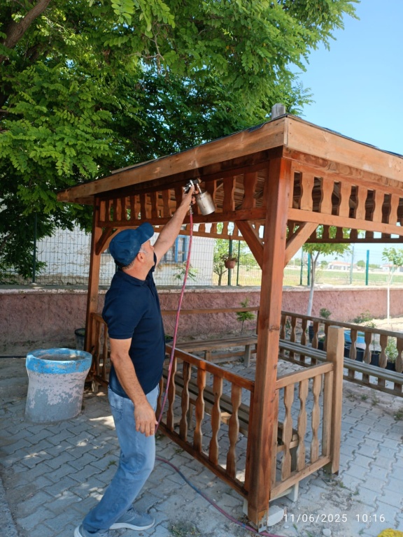 Okul çevresi düzenleme çalışmaları kapsamında kamelya için boya temin edilip bakımı yapıldıktan sonra boyandı ve yenilendi.