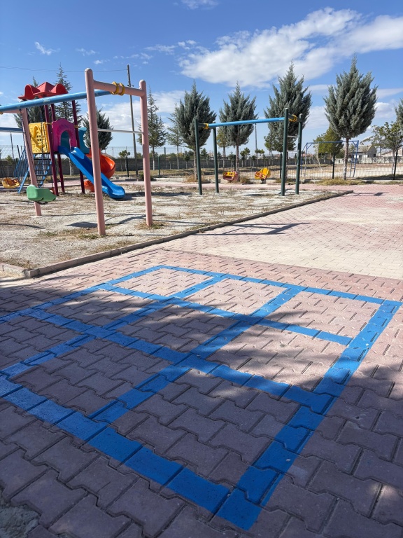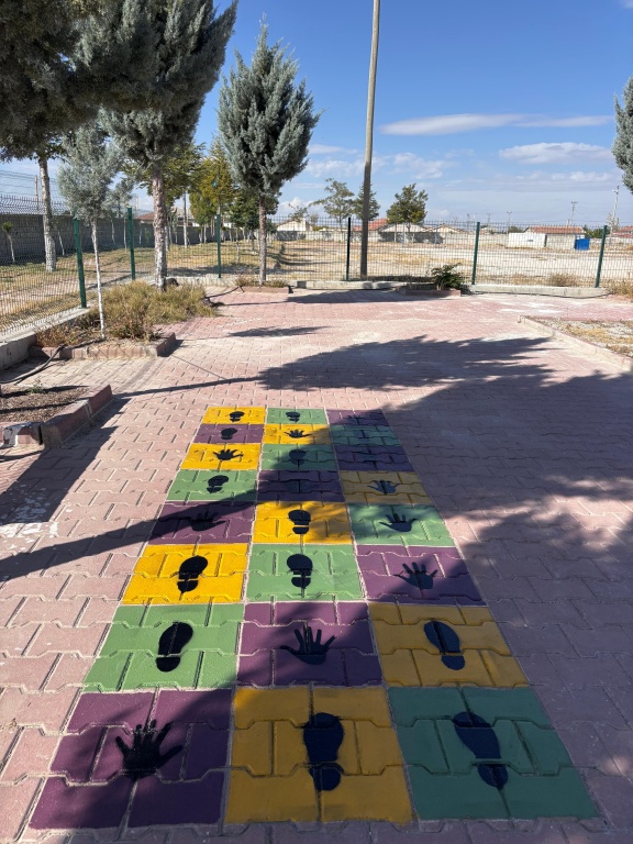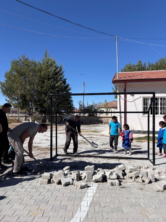 OKUL BAHÇEMİZE KALE DİREKLERİ GETİRİLDİ. PARKIMIZA YENİ OYUN ALANLARI ÇİZİLDİ.